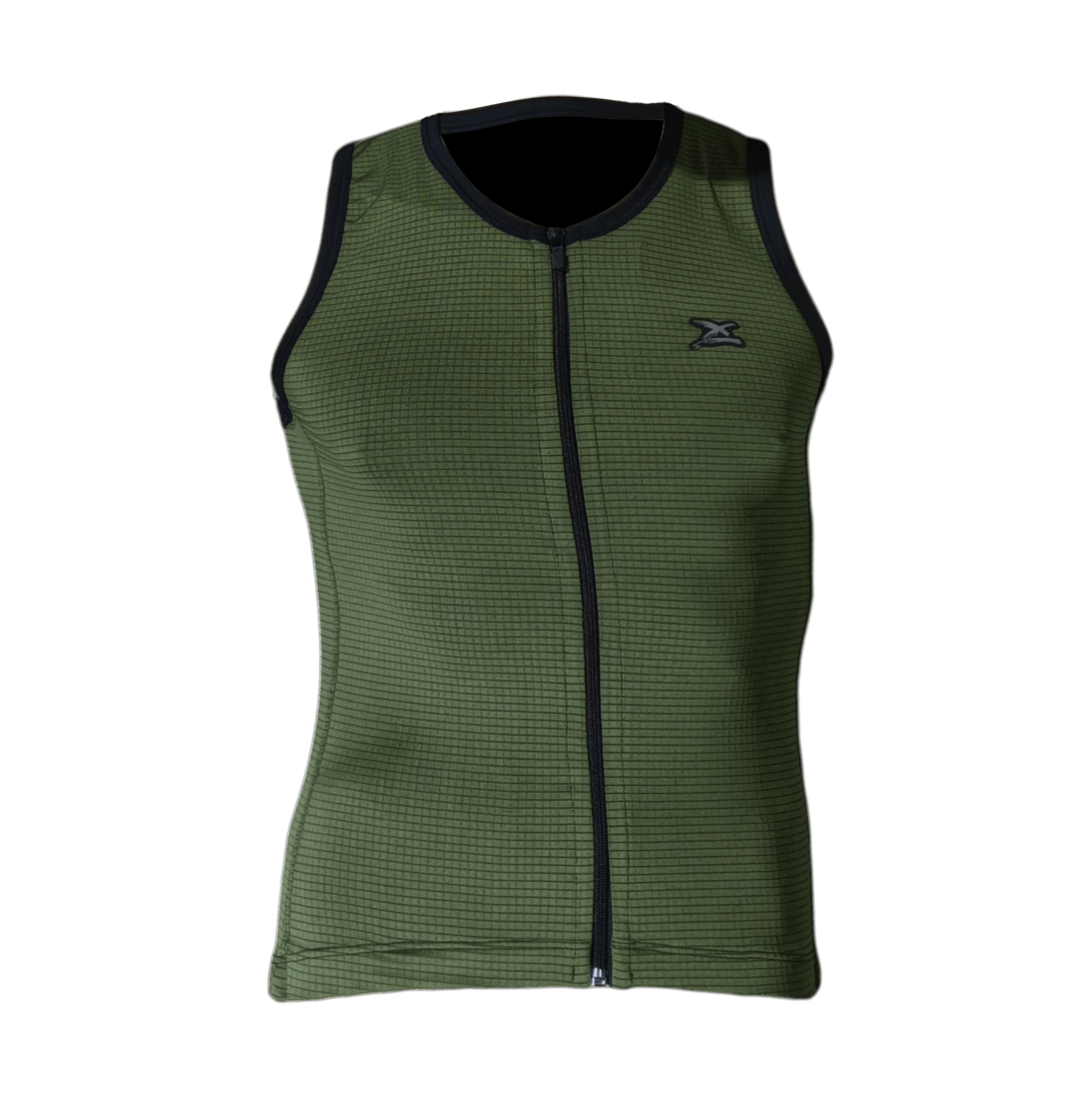 El frente y la espalda están hechos en tela microperforada que maximiza la ventilación y evacuación de la transpiración, de tejido ultraliviano y suave con gran elasticidad.